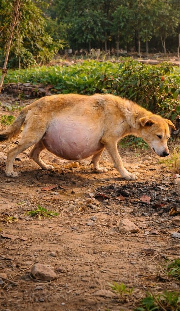 Her body was weak, her movements slow and careful. Her belly appeared swollen, making each step seem heavier than it should have been. There was no urgency in her actions—just quiet persistence, like someone walking through life with no clear destination, only the instinct to keep going.
