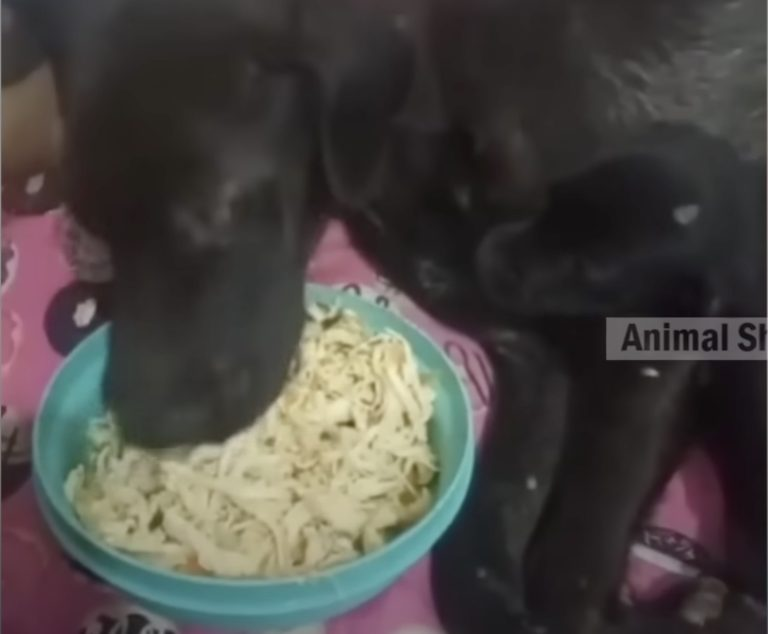 Food was introduced slowly to avoid shocking their fragile systems. The puppies ate eagerly, driven by hunger they had endured far too long. Paola approached food differently. She ate cautiously, stopping often, watching the bowl as if it might disappear. Her behavior revealed a lifetime of uncertainty. Even now, safety did not feel guaranteed.