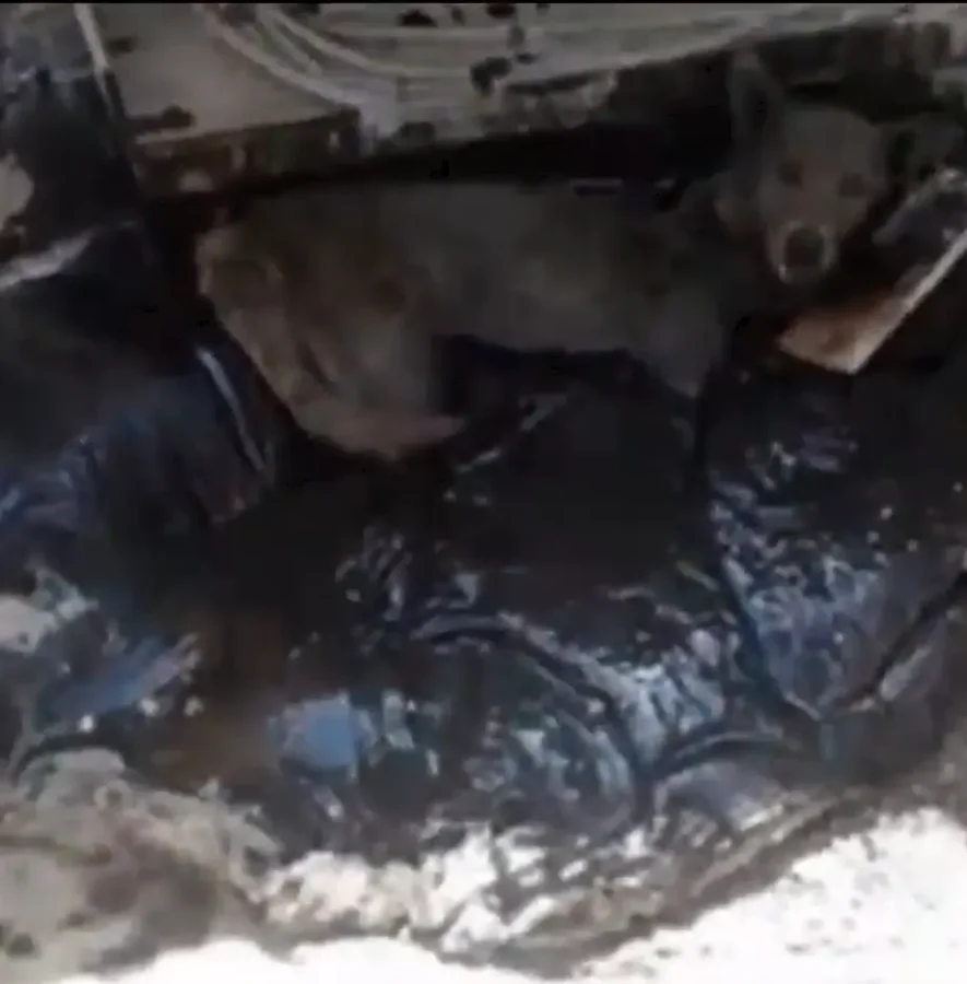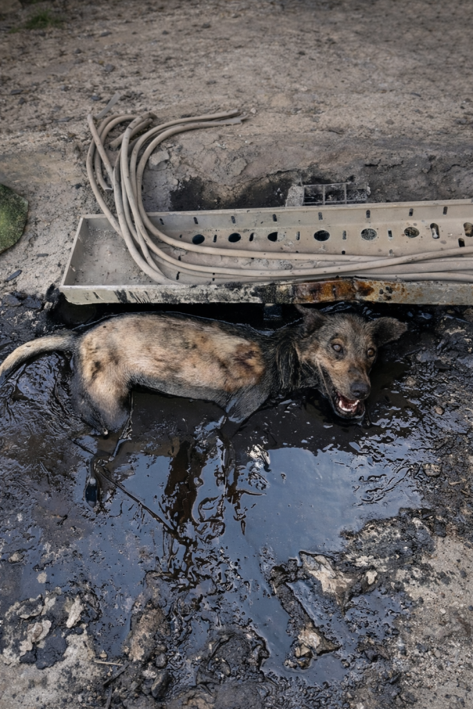 Zana’s story begins in a place no living being should ever endure—a factory yard where molten asphalt pooled in an open pit. Desperate for food, weak from nursing her puppies, Zana wandered too close. In one terrible moment, she slipped and fell into the thick, burning tar.