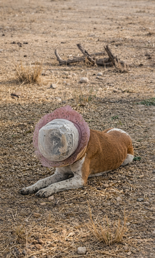 When people looked closer, the reality became clear. The dog’s head was trapped inside a hard plastic container that had sealed around her neck. She couldn’t eat. She couldn’t drink. And with every passing day, the situation became more dangerous.