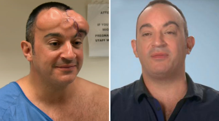 Dr. Nassif used tissue expanders—small bladders placed under the skin and gradually inflated—to stretch the skin. This clever technique allowed him to reposition George’s brows perfectly and reduce the scar’s appearance.