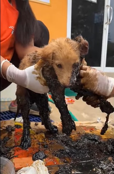 Beneath the tar was not a broken creature, but a gentle, beautiful puppy. His fur, once hidden, caught the light. His chest rose more steadily. His eyes brightened, as if waking from a nightmare he could finally leave behind.