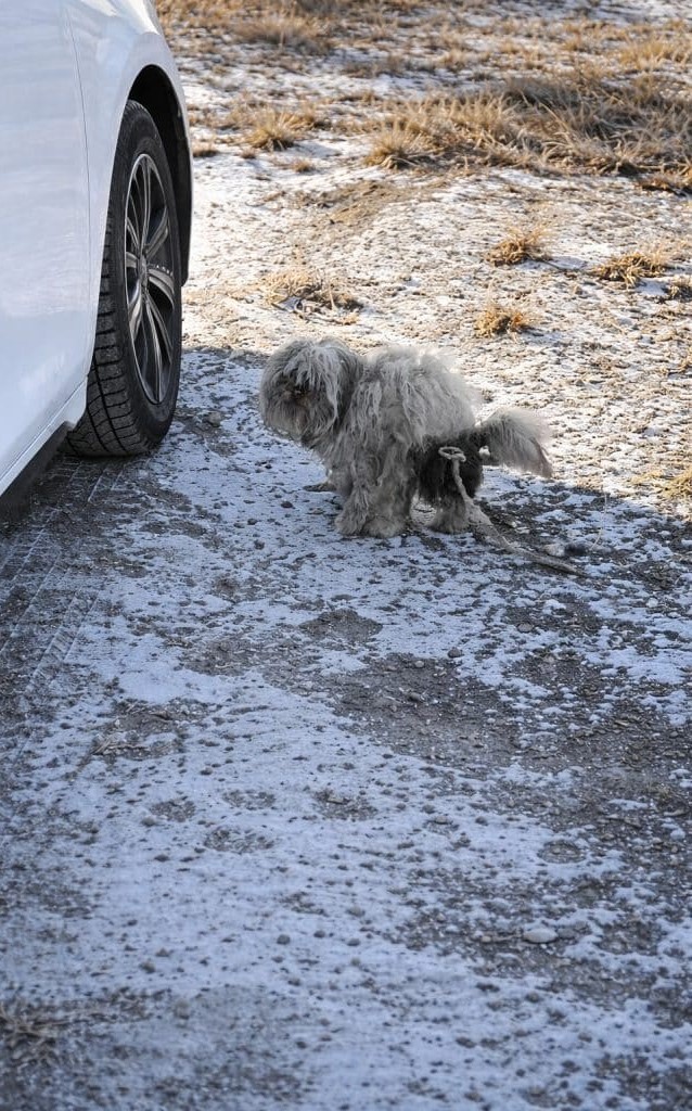 At the back of the dog’s body, there was a large, hardened mass—formed over time from tangled fur and debris.