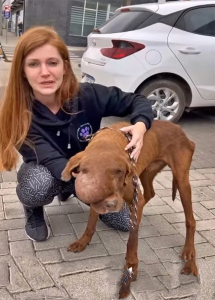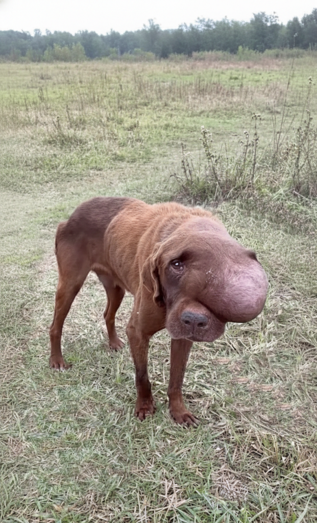 When she approached, the dog barely reacted. His body was swollen in places it shouldnt be. Dirt clung to his fur. Every breath looked like work. Pain had settled deep into him, the kind that doesnt scream anymore because it has lasted too long.