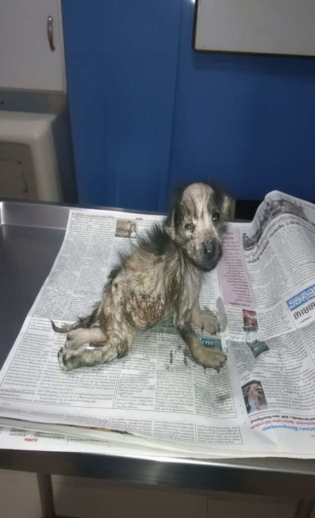 Her skin told another story entirely. Inflamed patches covered her small frame, raw and sensitive, marked by open sores that made even the lightest touch uncomfortable. When hands reached out to help, Ava did not fight. She let out a faint cry, not of fear, but of exhaustion. It was the sound of a puppy who had already spent every ounce of energy just staying alive.