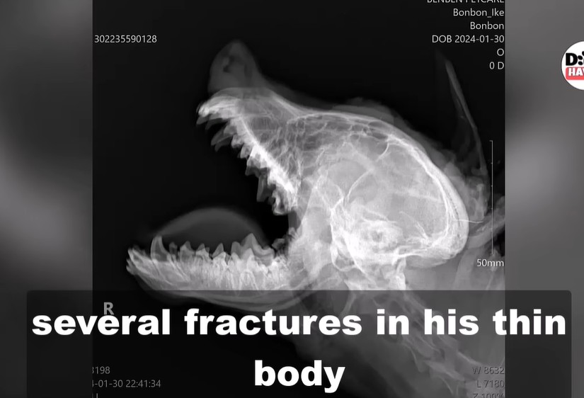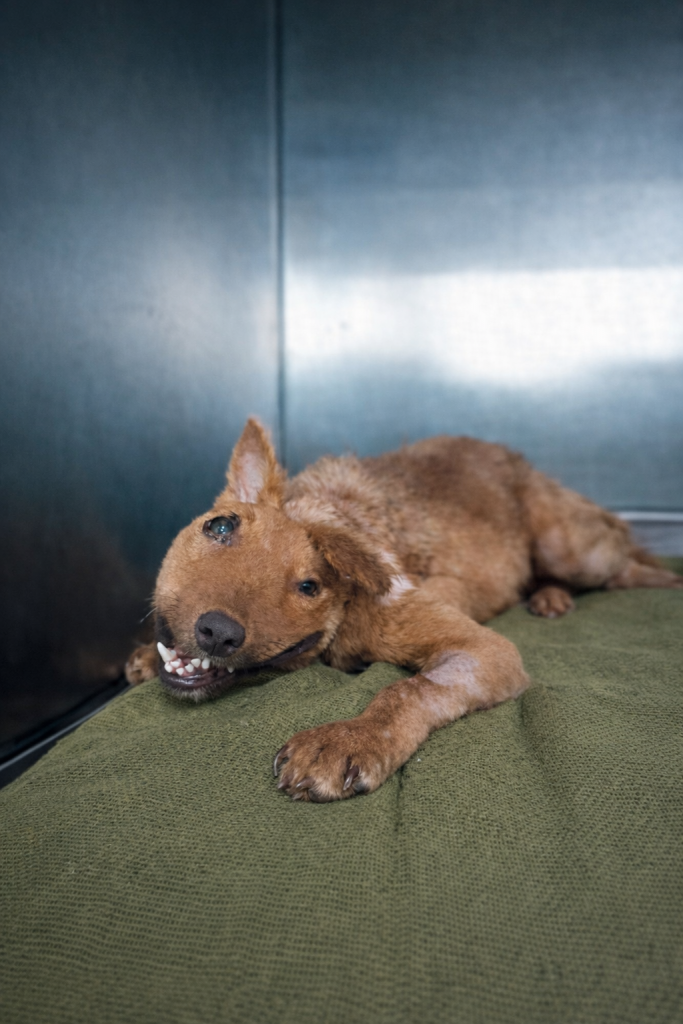 Once out of the canal, Bonbon was taken to a veterinary clinic for evaluation. The goal was simple: understand what he needed and how best to help him.
