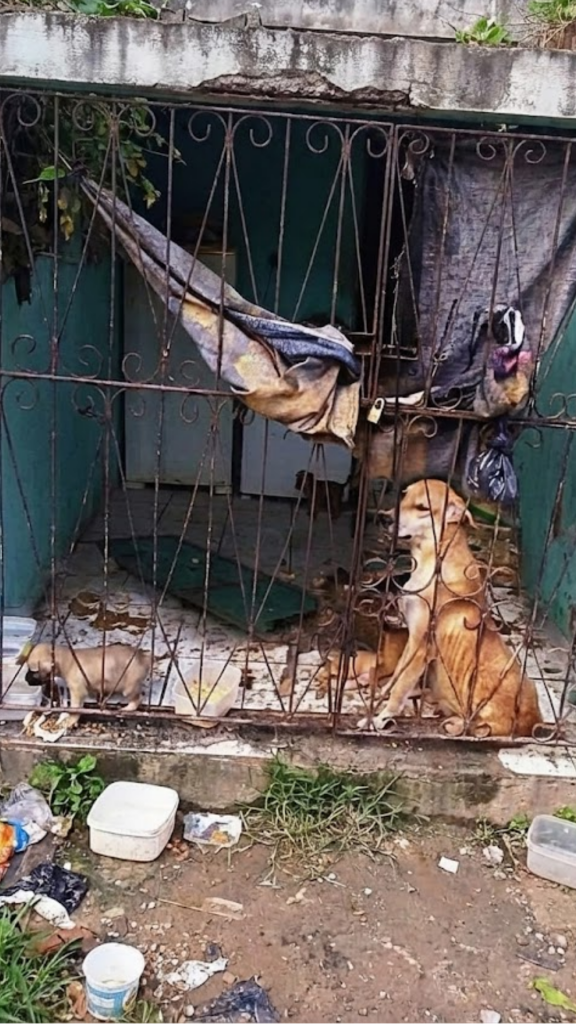 Behind that door, inside a neglected space no one visited anymore, a mother dog and her four tiny puppies lived in quiet isolation. No sunlight reached them. No fresh air moved through the room. The space felt heavy, as if time itself had slowed and forgotten them. The silence was not peaceful. It was dangerous.