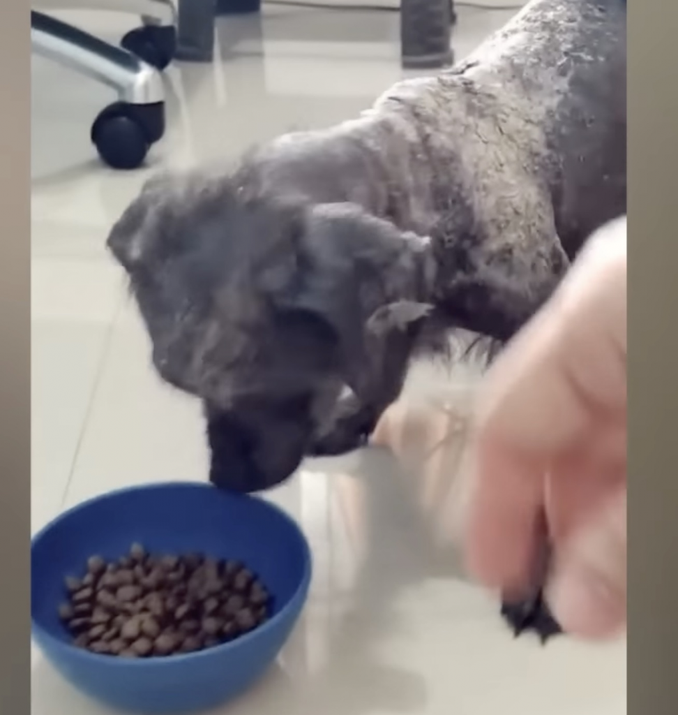 Food was offered next. Warm, soft, and nourishing. Kristy ate slowly, carefully, as if she understood how important each bite was. She did not rush. She did not guard the bowl. She simply ate, focused and determined, holding onto this unexpected chance.