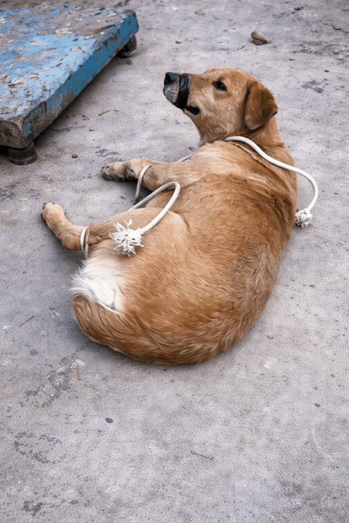 Nearby, other dogs waited inside a cage. They were quiet, observant, aware in their own way that something was unfolding.