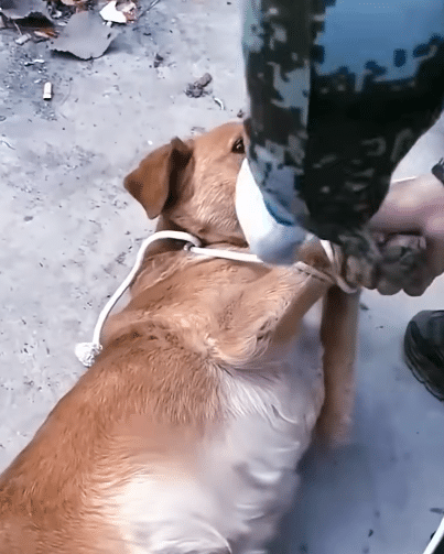 Her body was tense, not from aggression, but from uncertainty. Her eyes moved slowly, searching, trying to understand what was happening. She did not resist. She did not pull away. Instead, she stood there, calm and trusting.