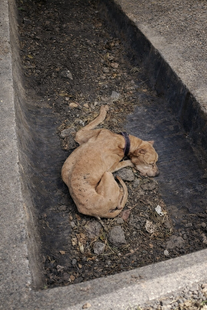 Early one morning, in a quiet corner of a rural path, a dog lay curled at the bottom of a deep, forgotten pit. The earth around him felt colder than winter. Mud clung to his fragile body. His ribs showed through thinning fur. Bald patches marked his skin, scratched and irritated from weeks of survival without shelter. His eyes—once bright with curiosity—had grown dim.
