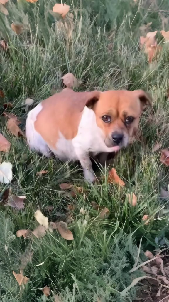 She appeared one morning along a quiet stretch of open land where almost nothing stopped for long. No houses nearby. No regular traffic. No sign that help would come easily. At first glance, she blended into the earth itself. Her body lay low and still, as if conserving every ounce of energy she had left. Only when someone slowed down did the truth become clear. She was a pregnant dog, her belly heavy with life, her frame painfully thin.